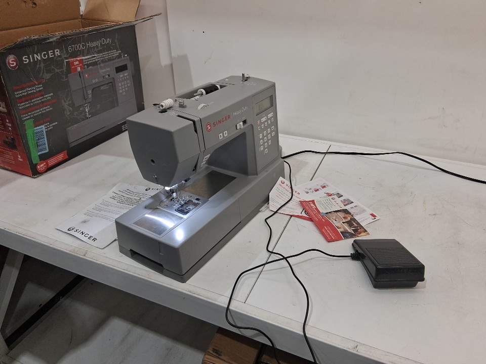 Needs repair, some broken parts that need replacement, seems to still receive power, apparent through working lights and digital screen. thread previously inside, indicating use.
