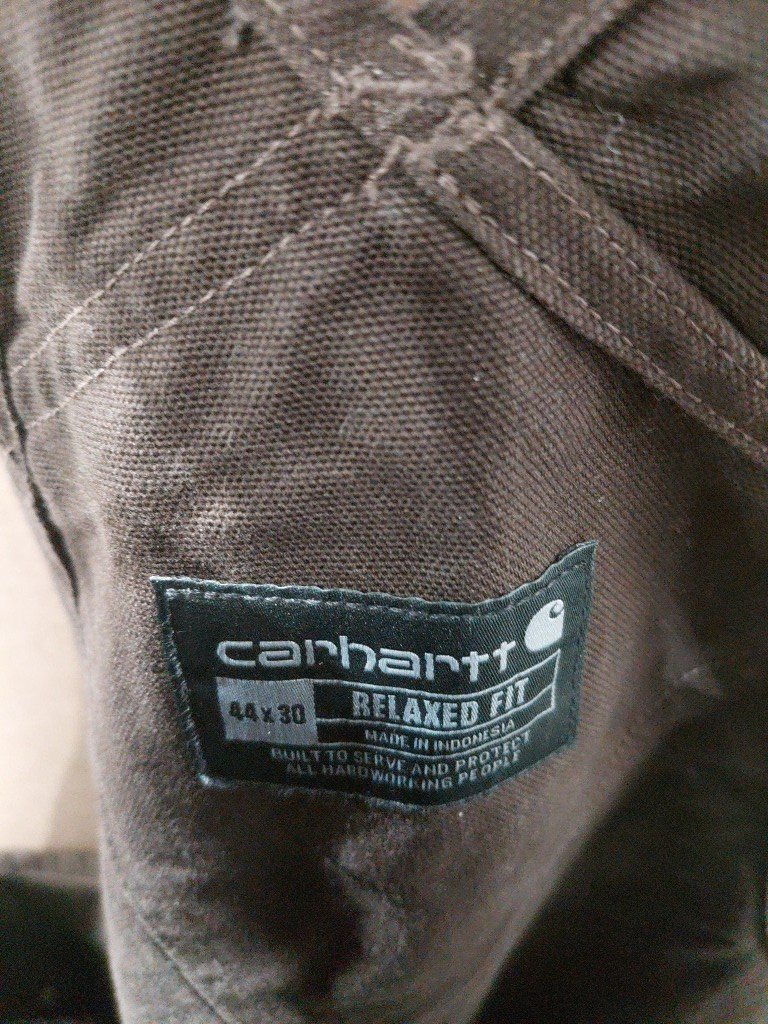 MENS CARHARTT RELAXED FIT DUCK BIB OVERALLS - 44w x 30l - DARK BROWN (STYLE: R01-M)