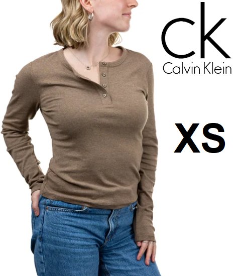 Women's Calvin Klein Woven long sleeve henley shirt - EXTRA small - BROWN - (STYLE:1907725)