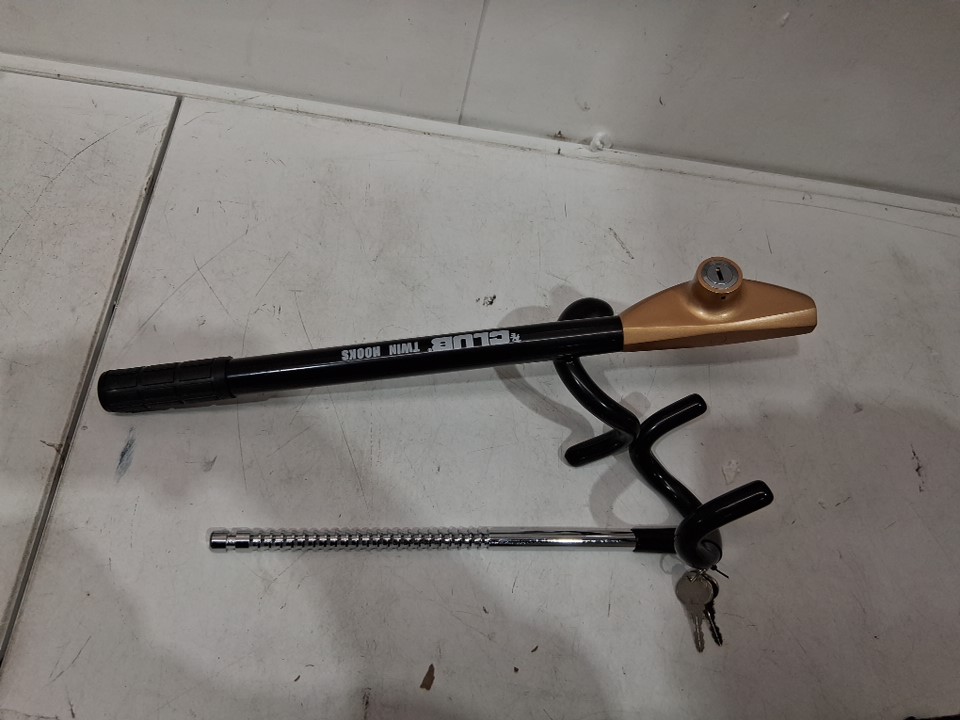 WINNER THE CLUB TWIN HOOKS KEYED STEERING WHEEL ANTI-THEFT LOCK - BLACK/GOLD (MODEL: 3100)