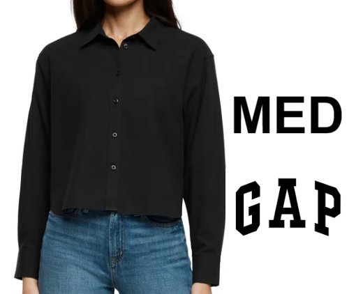 WOMEN'S GAP cropped poplin button down long sleeve shirt - medium - black (style: 1904588)