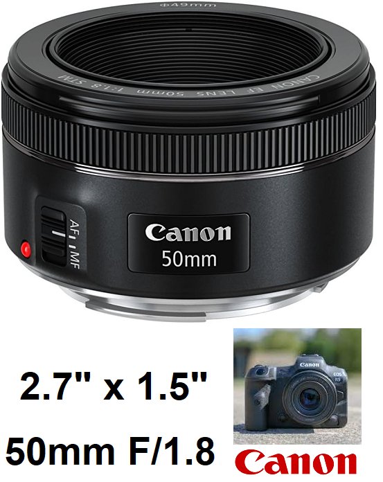 CANON EF 50MM F/1.8 STM CAMERA LENSE FOR EF CAMERAS -2.7" x 1.5"- BLACK (MODEL: 0570C005AA)