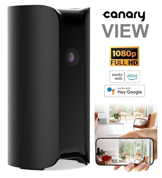 Canary View Smart Indoor Security Camera with Motion Alerts, Two-Way Talk, Night Vision, 10x Zoom, and Private Mode - 1080P FHD - Works with Alexa and Google - Black (Model: CAN400USGY)