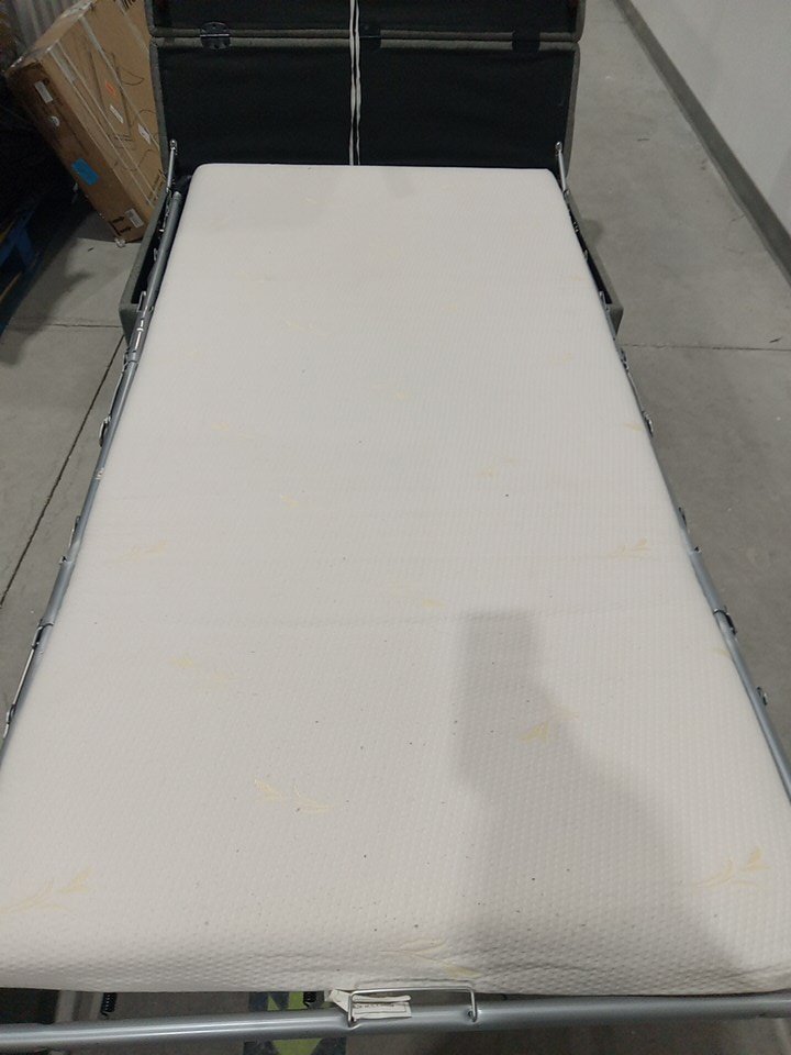 Item shows light signs of being tried out prior to being returned (there is some debris/fabric pieces on the mattress. See attached photos.