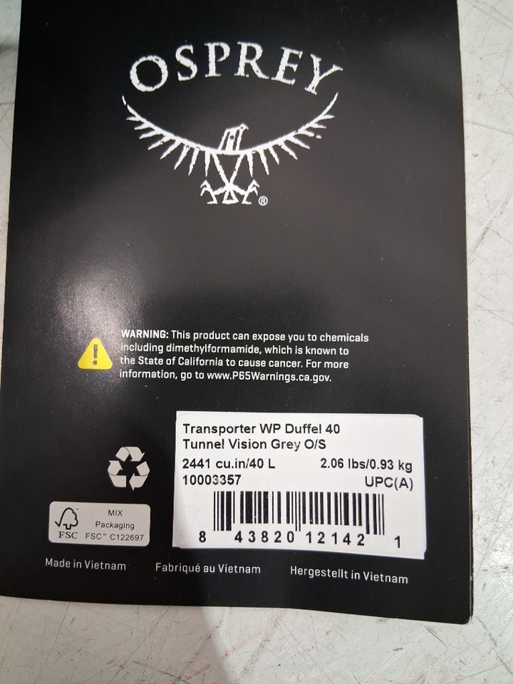 OSPREY Transporter Waterproof Duffel 40 - one size - tunel vision grey