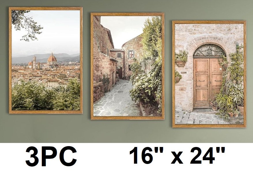 3pc upwoigh large framed Natural Cotton canvas wall art - 16" x 24" - Italy Florence Tuscany Countryside