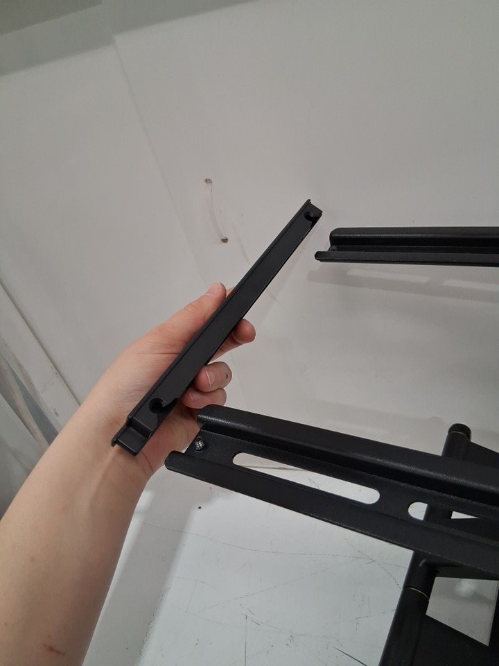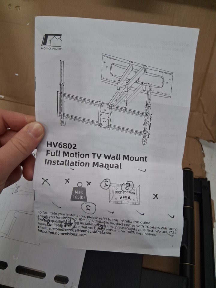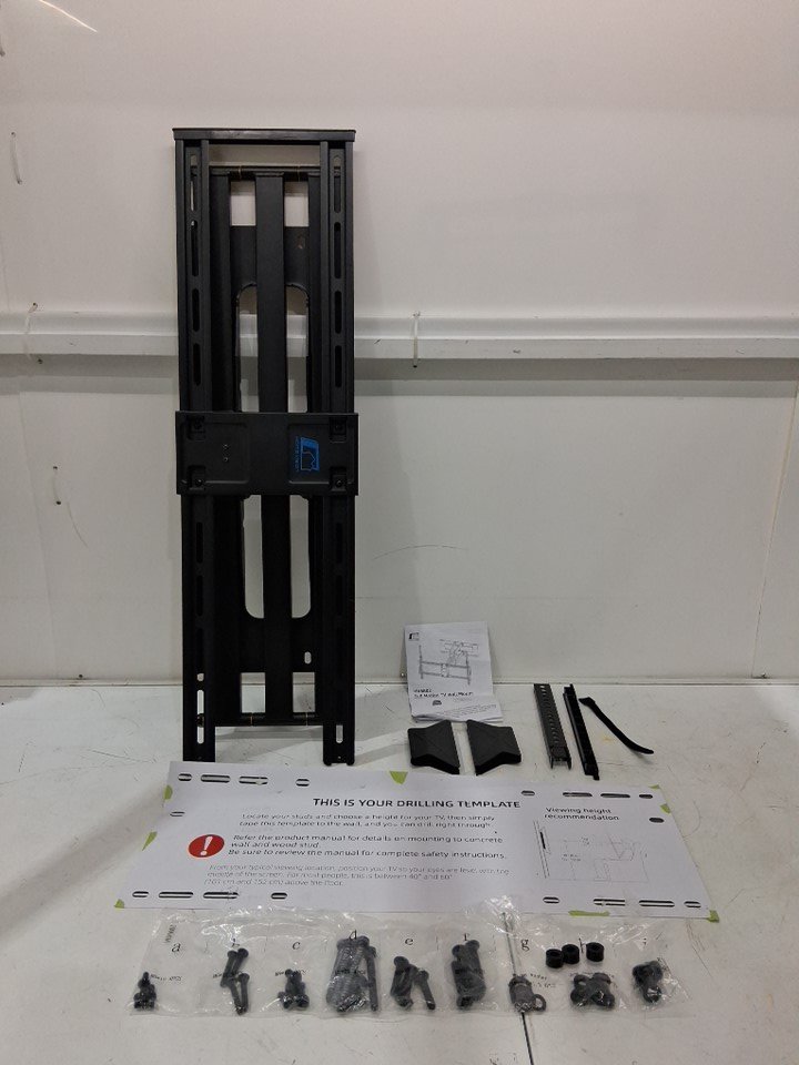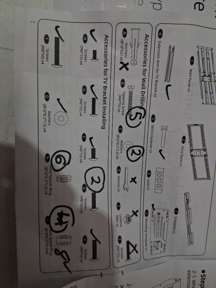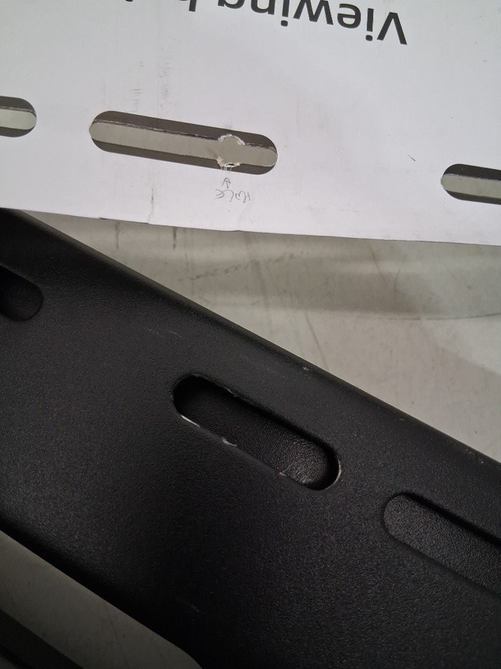 Item has scraping in the mounting holes and a broken arm piece indicating it has been used previously. Some of the generic hardware is missing. See photo of parts list.