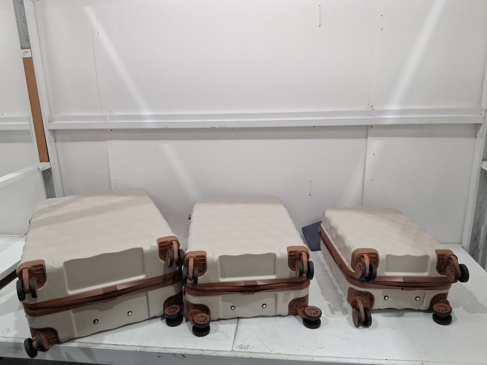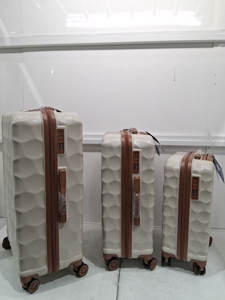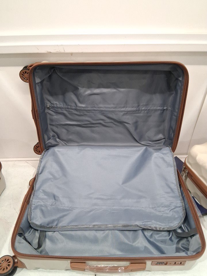 3PC Aklsvion Durable Hardshell Luggage with Universal Wheels PC+ABS AND TSA LOCK - 20/24/28" - BEIGE - (MODEL:AK-10)
