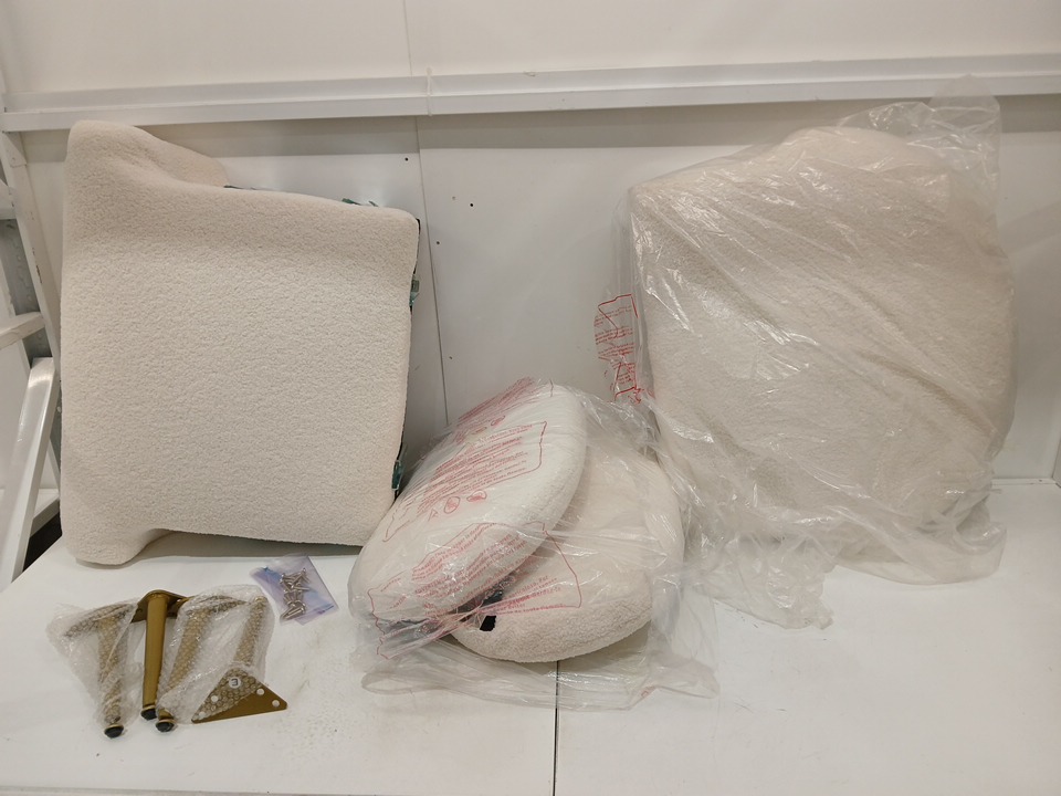 faux lamb wool fabric lounge armchair - white/gold (model: sj-lf-whg)