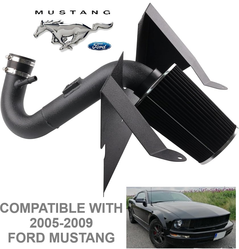 BAGARAATAN performance Cold Air Intake system - Compatible with 2005-2009 Ford Mustang (Model: AIM049-BK-BK)