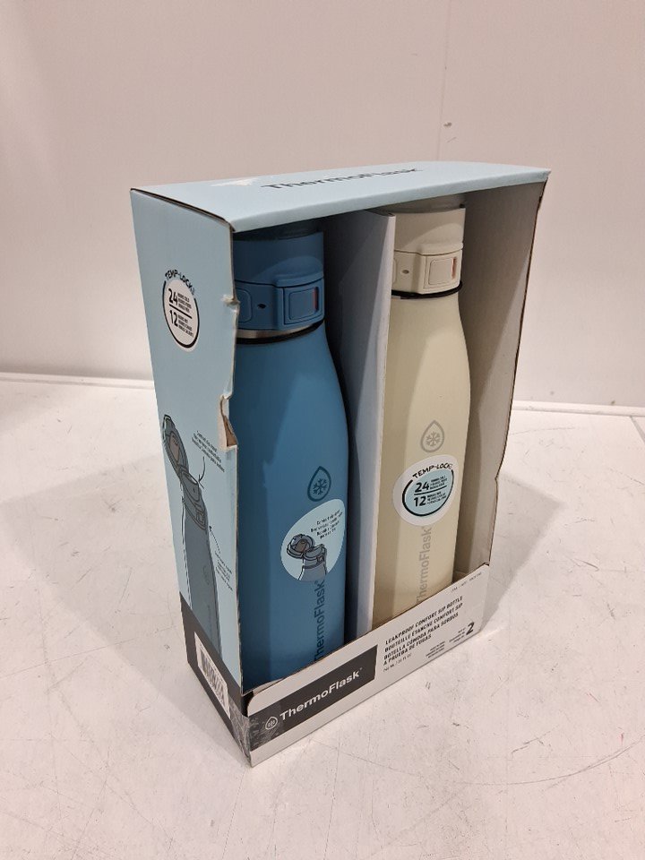 2pk thermoflask leakproof comfort sip Stainless Steel bottle - 25oz - blue/beige (model:1901736)