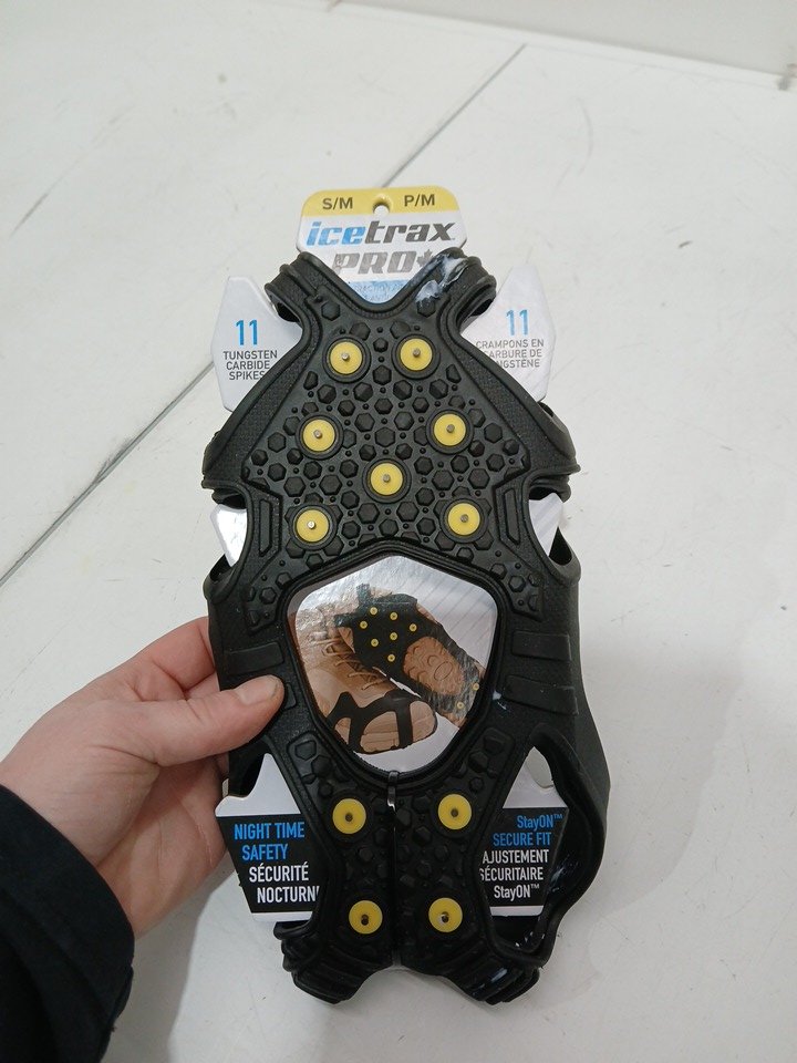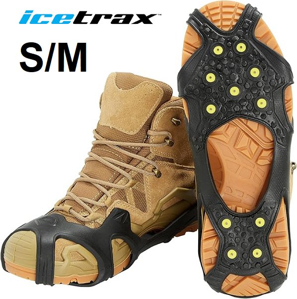ICETRAX PRO TUNGSTEN Grip Winter Ice Cleats for Shoes & Boots with StayON Toe & Reflective Heel - SMALL/MEDIUM