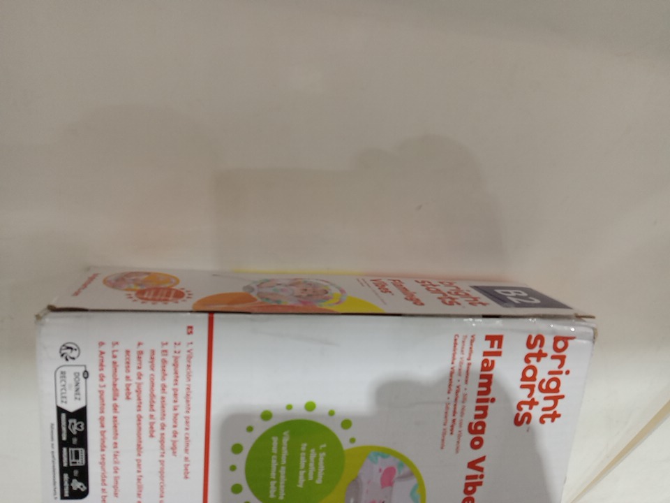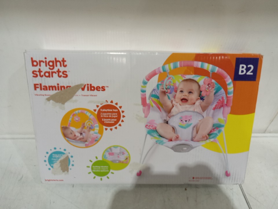 BRIGHT STARTS 3-POINT HARNESS VIBRATING BABY BOUNCER WITH TOY BAR - FLAMINGO VIBES (MODEL: 12228-ES)