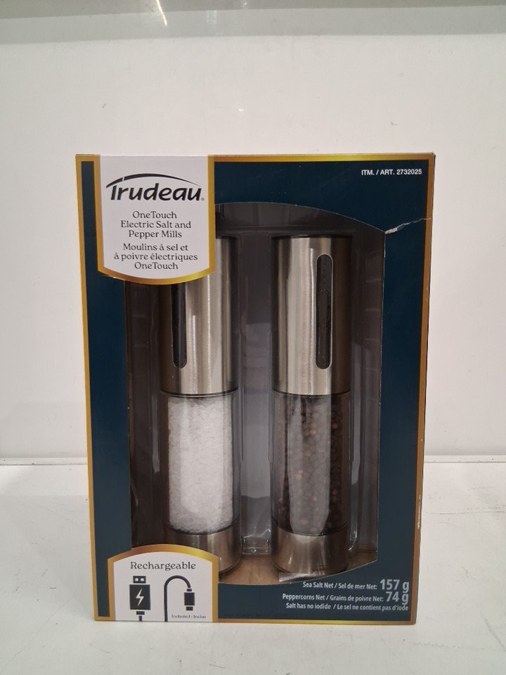 2PC Trudeau One-Touch Electric Salt & Pepper Mills - 9" - Silver/Black