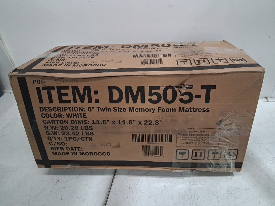 Brick Attic Firm Memory Foam Mattresses for Cooling Sleep and Pressure Relief - twin - 5" - white (Model: dm505-t)