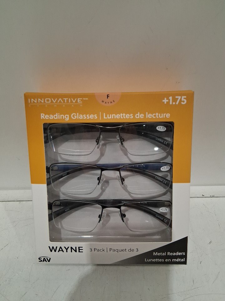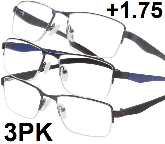 3pk innovative eyewear wayne reading glasses - +1.75 - black/grey/blue (STYLE: 8856175)