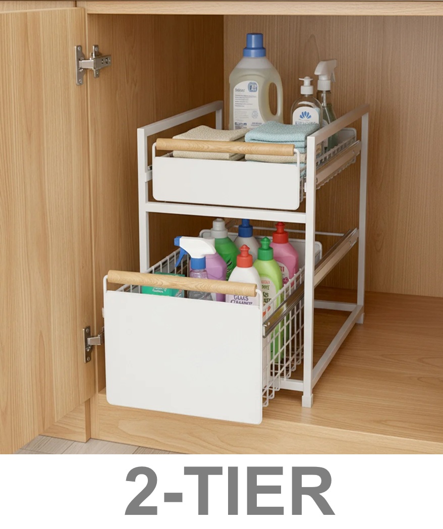 Mesa 2-Tier Organizer with Drawers - 12" x 16" - White/Wood (Model: 1901761)