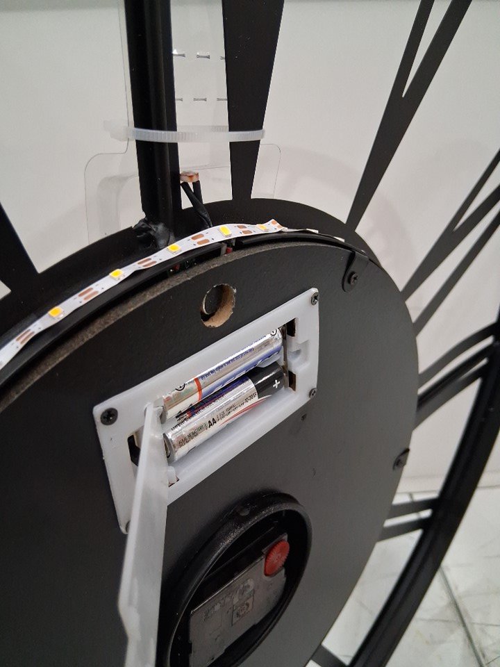 Tested for power/'ticking'. We could not get the LED lights to work despite adding batteries. See photos.
