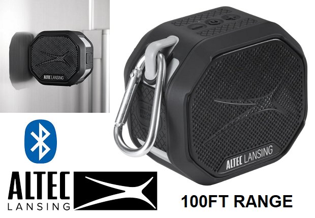 ALTEC LANSING HydraTrek Rugged EVERYTHINGPROOF® Portable Bluetooth Speaker, 100FT Range - Black/Grey (Model: IMW1012-BLKLGRY)