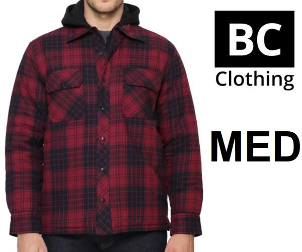 MENS The B.C. Clothing Co. Quilted Flannel Overshirt With Hood - medium - RED/BLACK (style: 3822444)