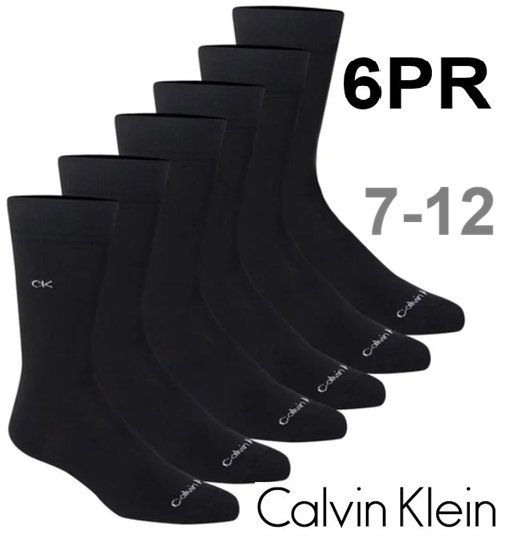 6PR Calvin Klein comfort dress socks -SIZE 7-12- BLACK (Style: 1915543)