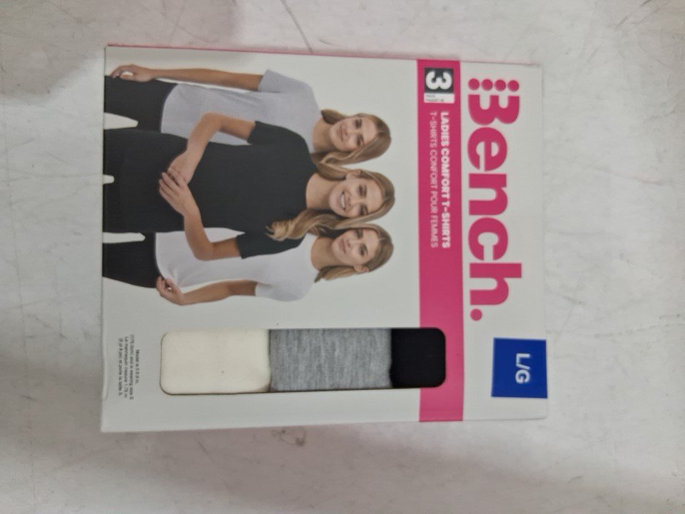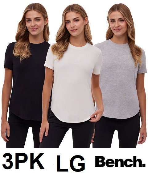 3PK women's BENCH comfort crew neck t-shirts - LARGE - grey/white/black (style: 2945482)