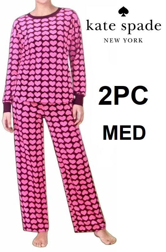 2PC Women's Kate Spade Pajama Set - medium - Pink Heart Pattern (STYLE:4112001)