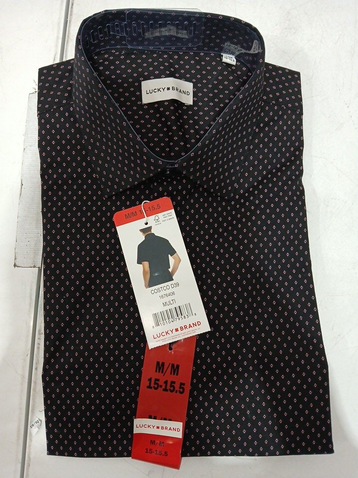 men's Lucky Brand Short Sleeve Dress Shirt - medium - BLACK/PINK (STYLE: 1676406)