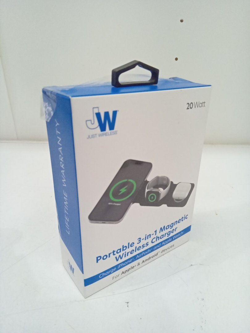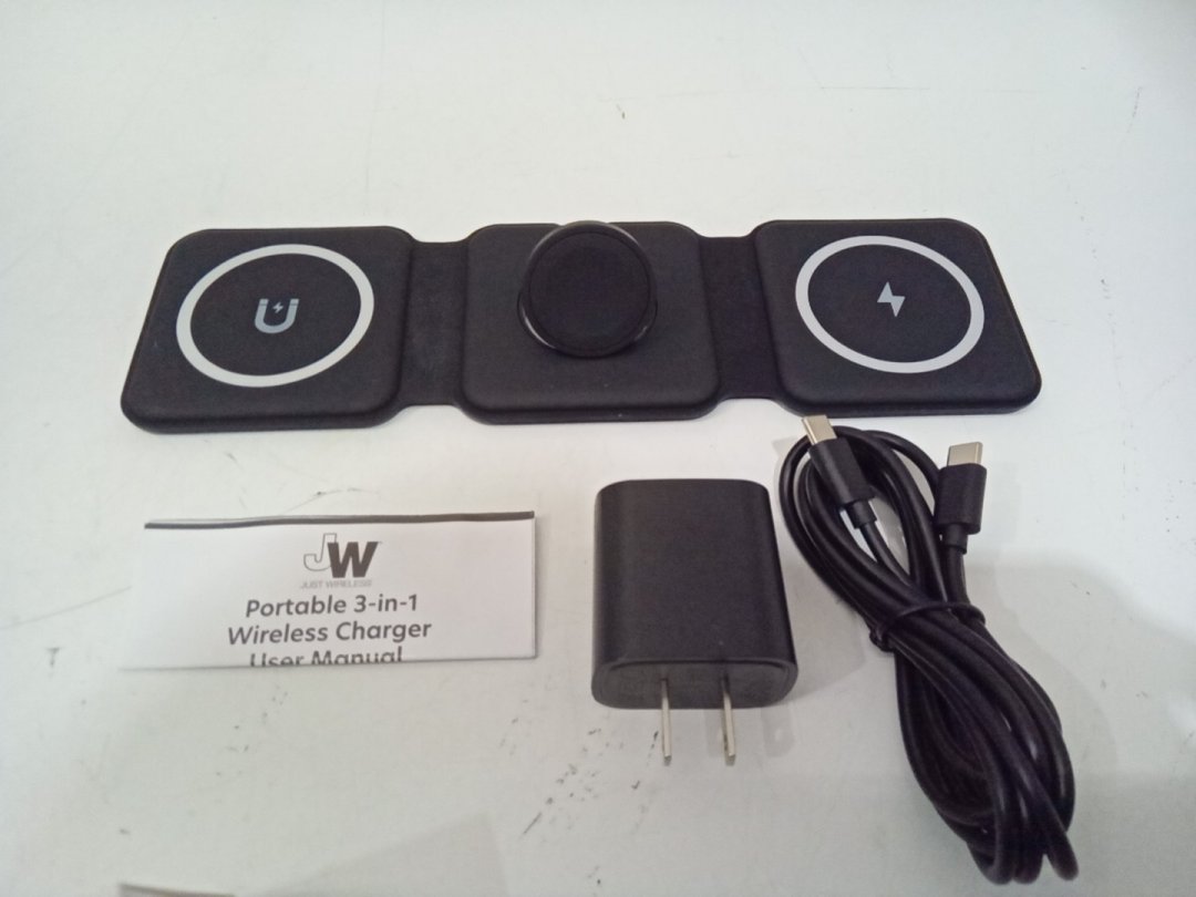 Just Wireless 3-in-1 Portable Foldable Magnetic Wireless Charger for Apple Devices, Apple Watch, and Android Devices - 20W - Black