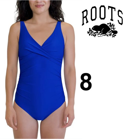 womens roots Criss-Cross V-Neck One Piece Swimsuit- size 8- royal blue (style: 1795101)