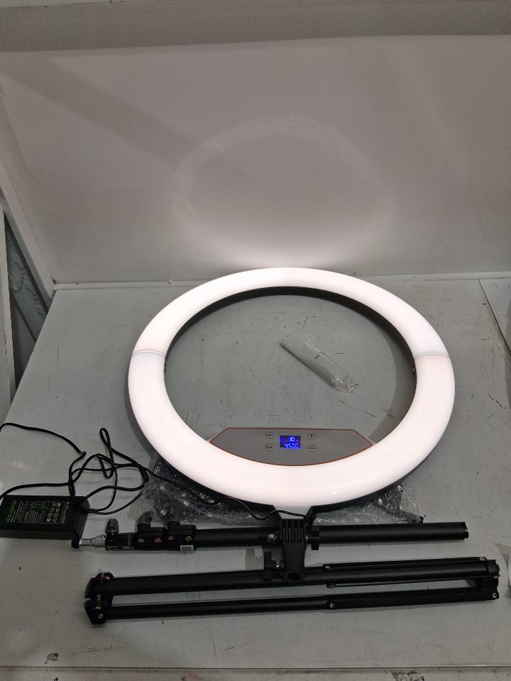 LED Ring Light with tripod and remote control folding carry case - 22" ring 2600K-6500K adjustable - black/white