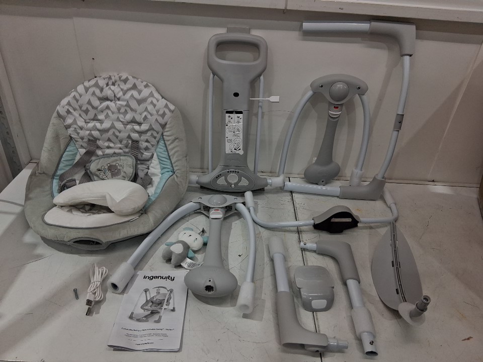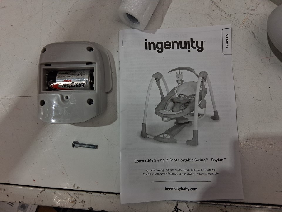 INGENUITY CONVERTME SWING-2-SEAT corded PORTABLE SWING - OM to 9M - RAYLAN FASHION / grey (MODEL: 12189-es)