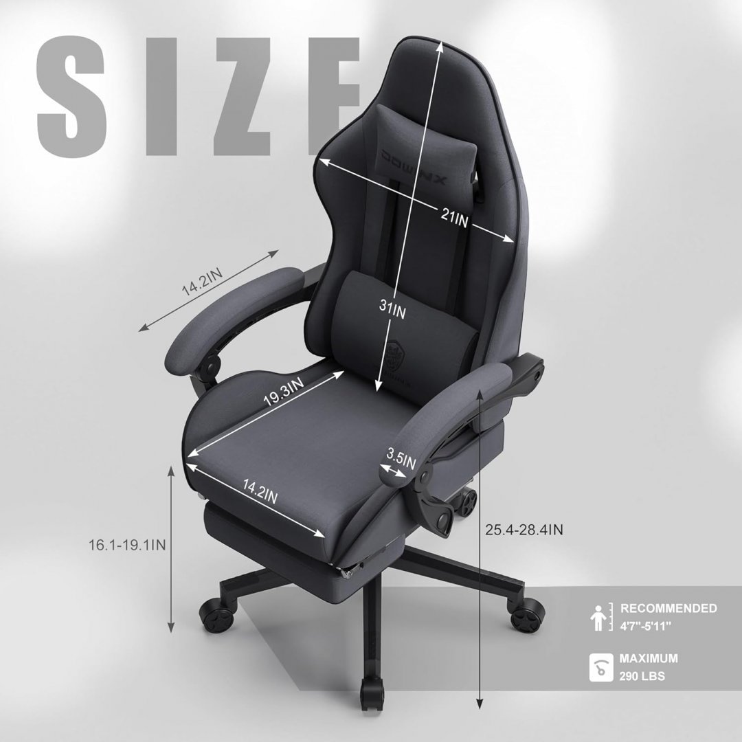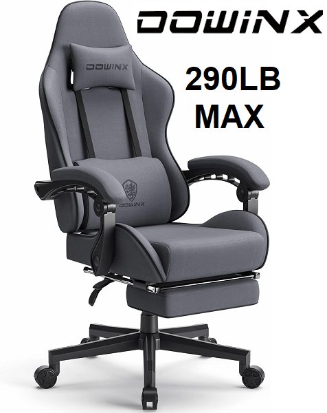Dowinx Ergonomic Gaming Chair with Pocket Spring Cushion, Headrest AND Footrest - 290LB MAX - DARK GREY (MODEL: ls-66d58-02)