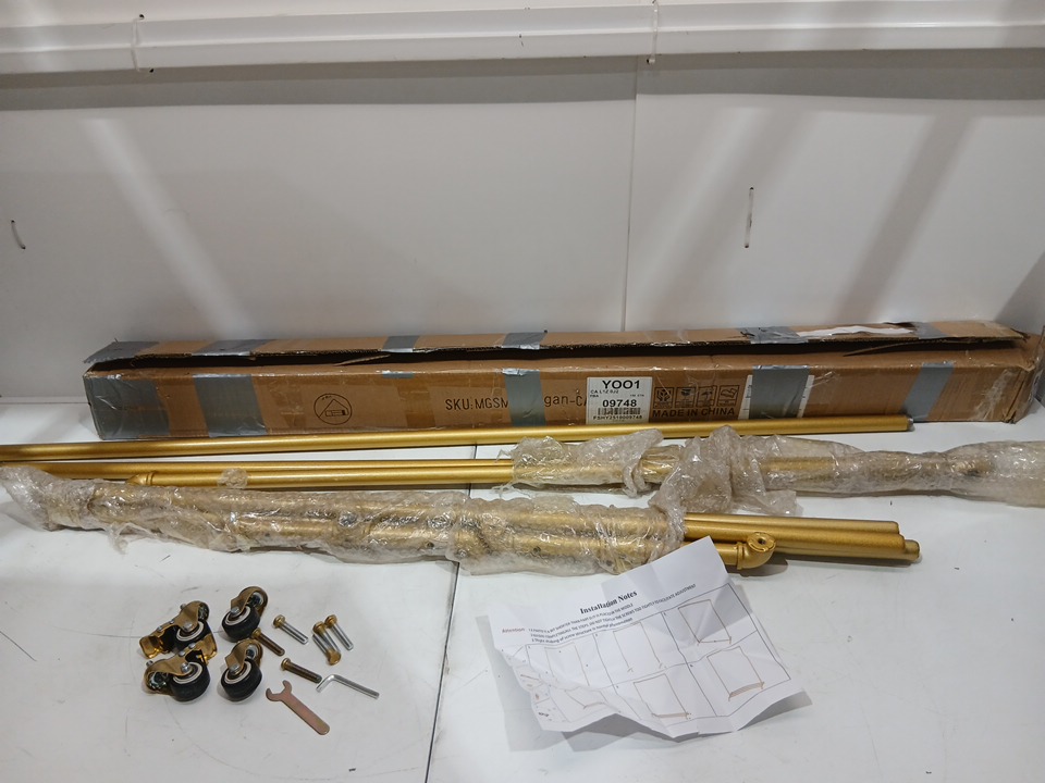 metal industrial style pipe clothing garment rack with bottom shelf and castor wheels - 63" x 47" - gold (model: cr2)