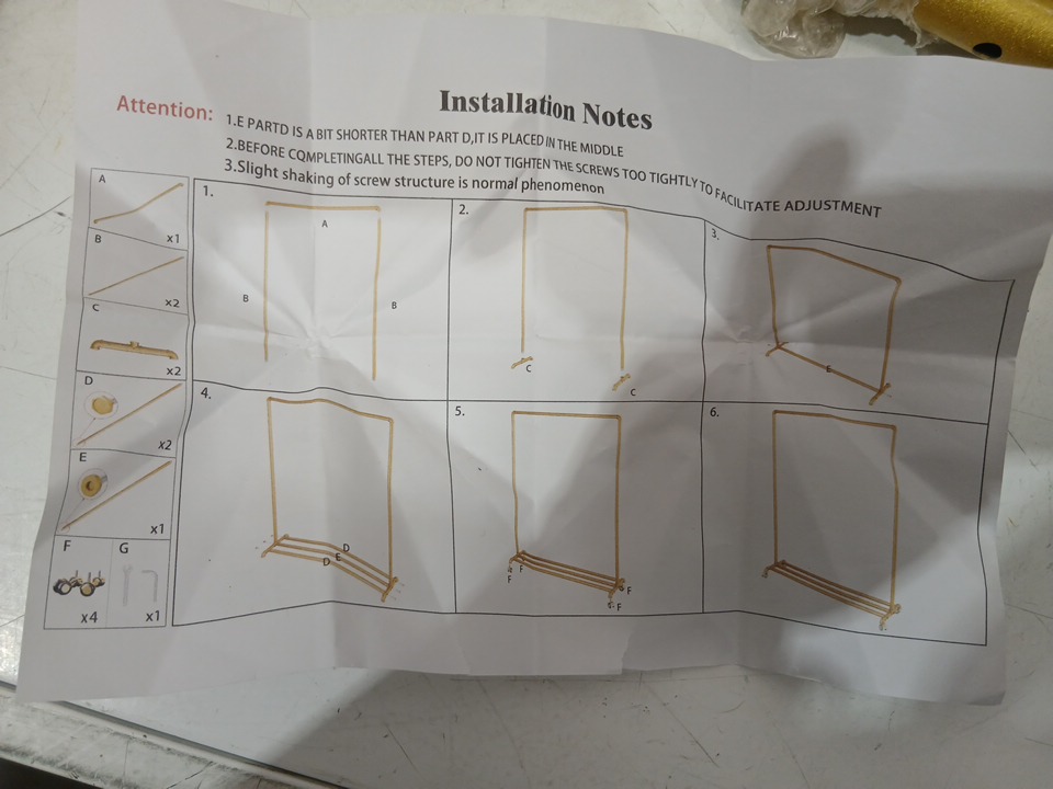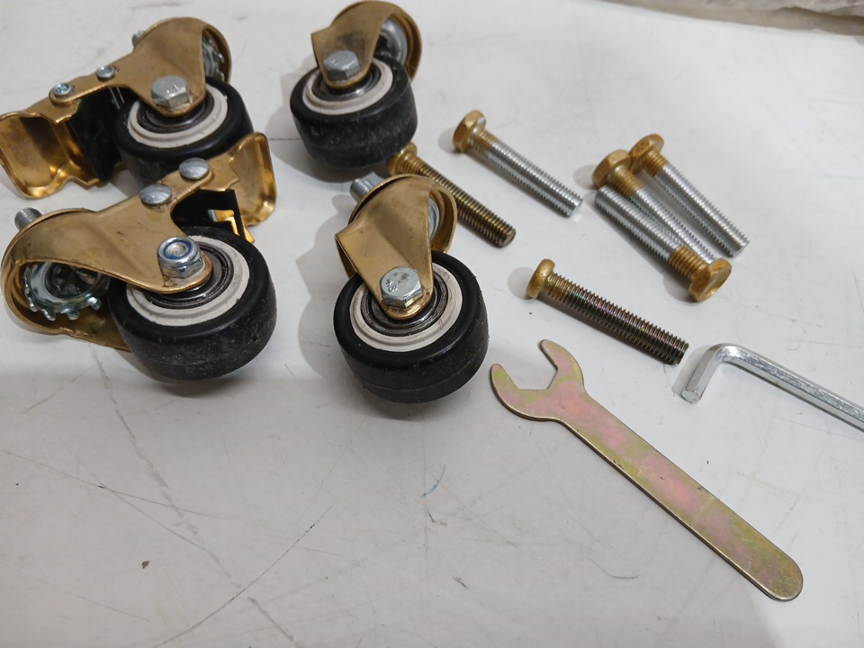 appears to have been assembled previously due to marks on ends of rods and dirt on wheels.