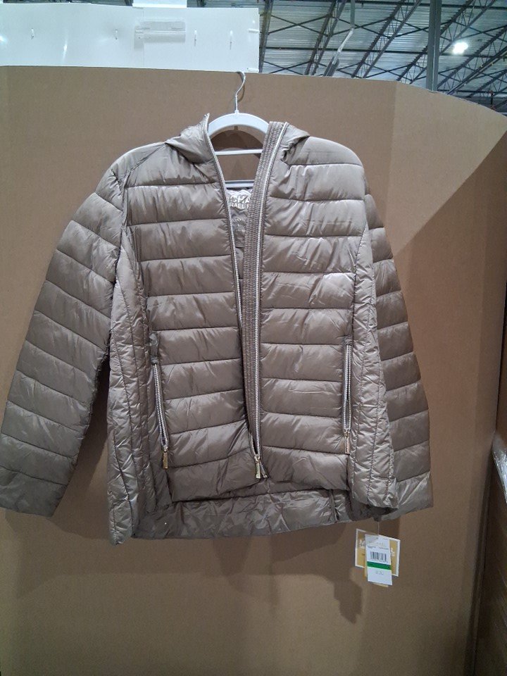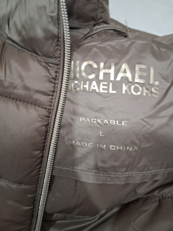 womens michael kors packable puffer coat with hood - large - taupe - (style: m424723t93)