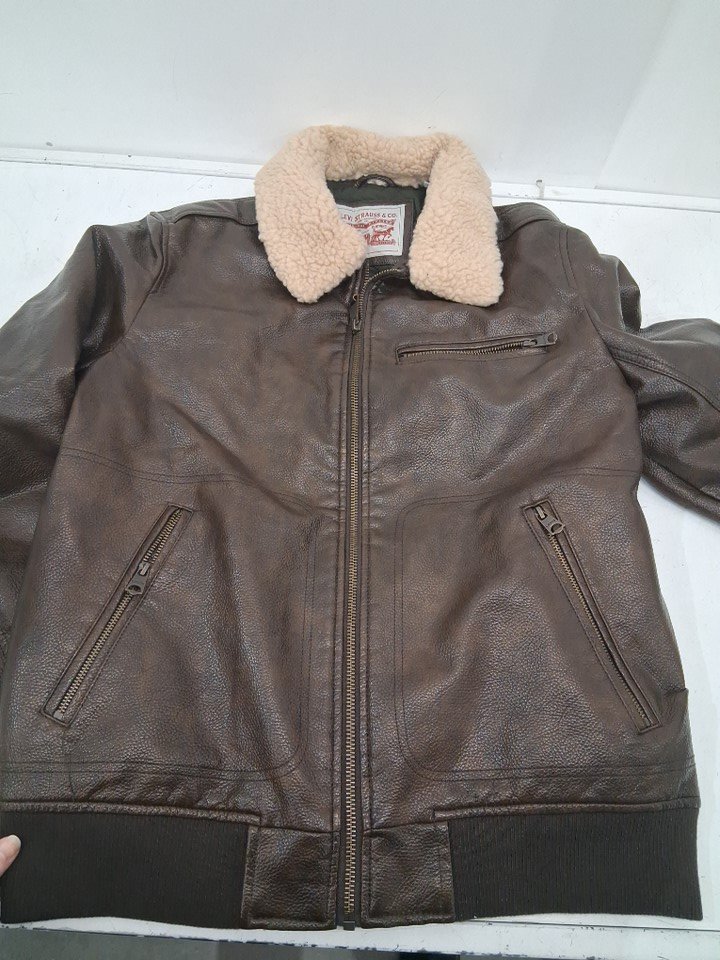 Men's Levi's Faux Leather Aviator Bomber Jacket with Sherpa Collar - MEIDUM - Dark Brown (Style: LM3RU804)