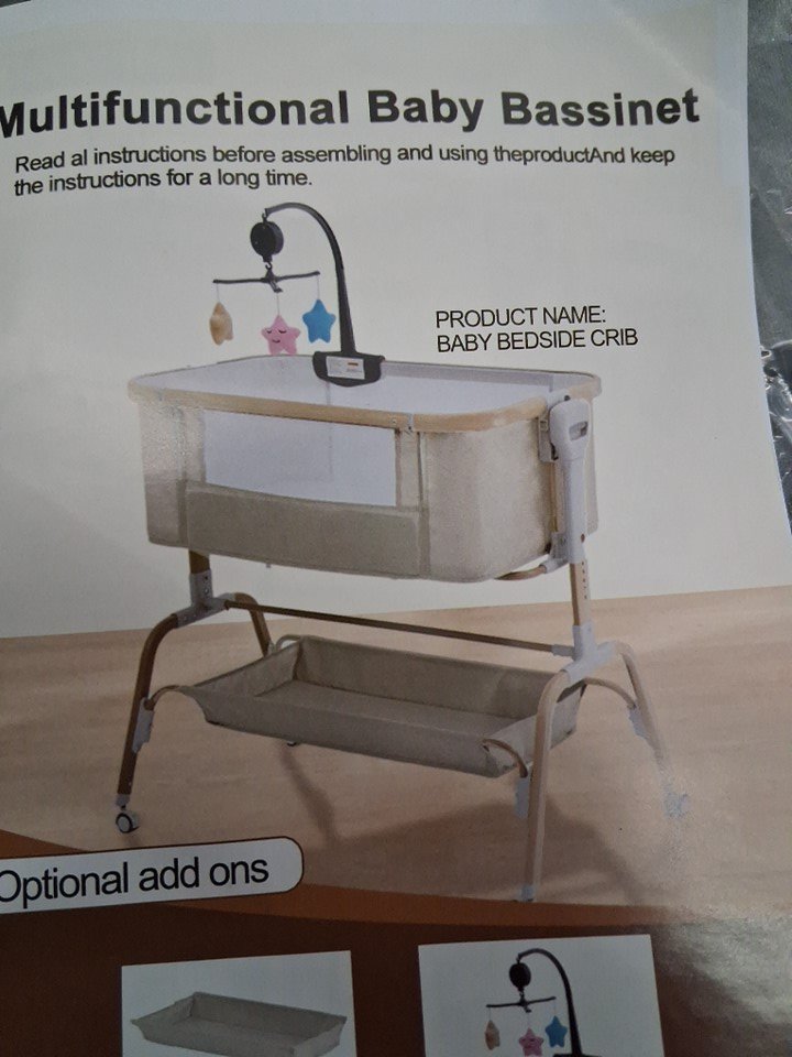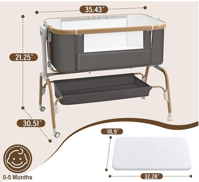 Mariserenity beside baby bassinet with rocking sleeper, adjustable height with wheels - Dark grey/woodgrain (Model: QWM-001)