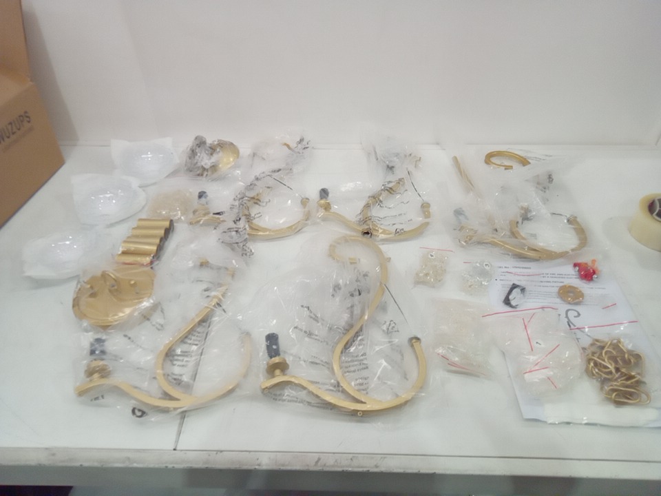 please note that 2 of the glass candle holders on the light broke - so we only have 3. see photos.