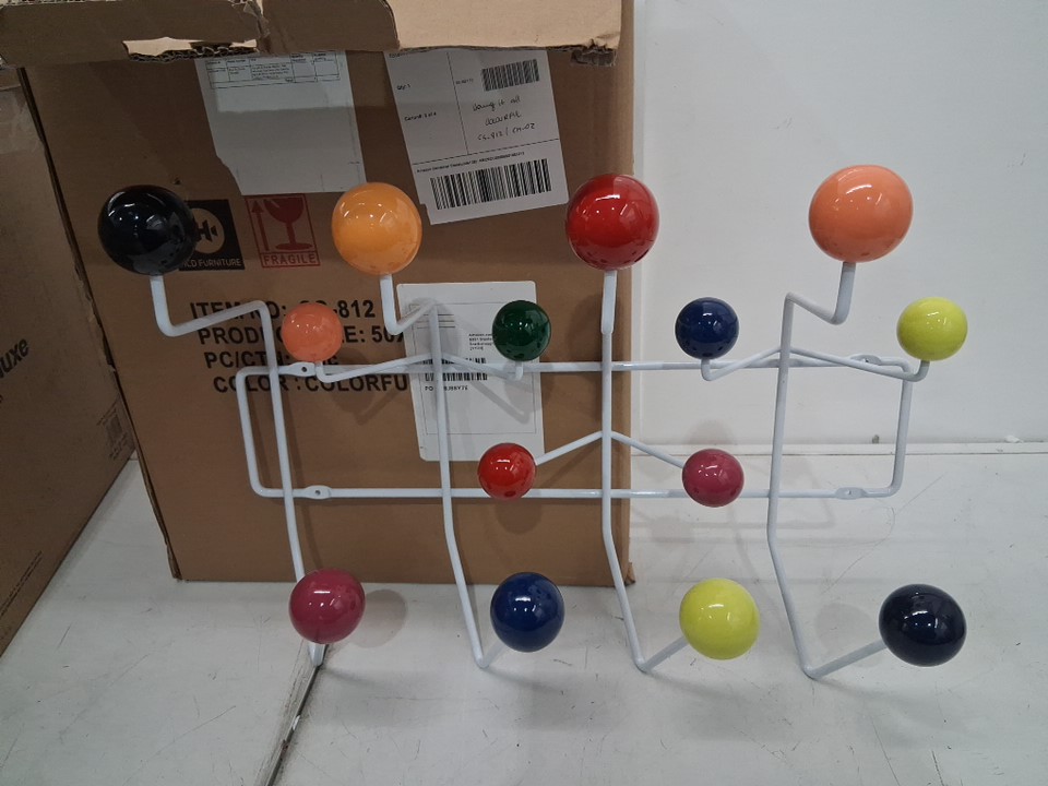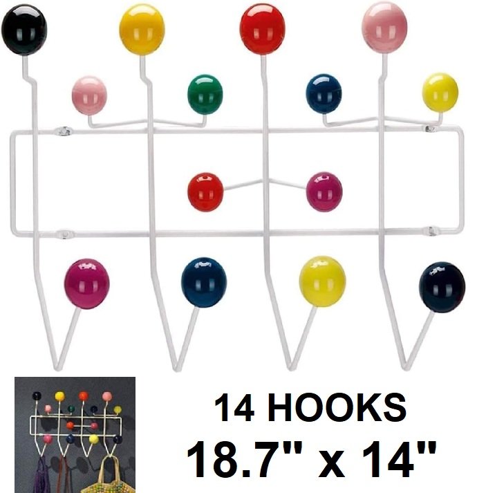 colorful rustproof wall mounted coat jacket rack - 14 hooks / 18.7" x 14" - white/multicolor (model: cs-812)