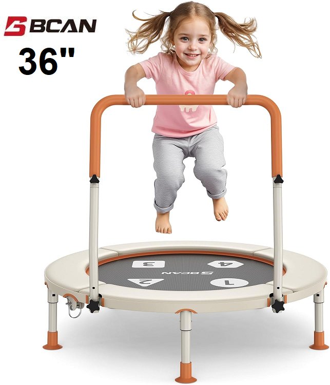 bcan toddler round trampoline with Adjustable Handle, Safety Pad - 36" - beige - (model: TX-6232N-36)
