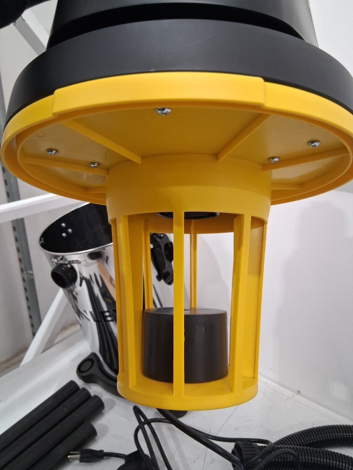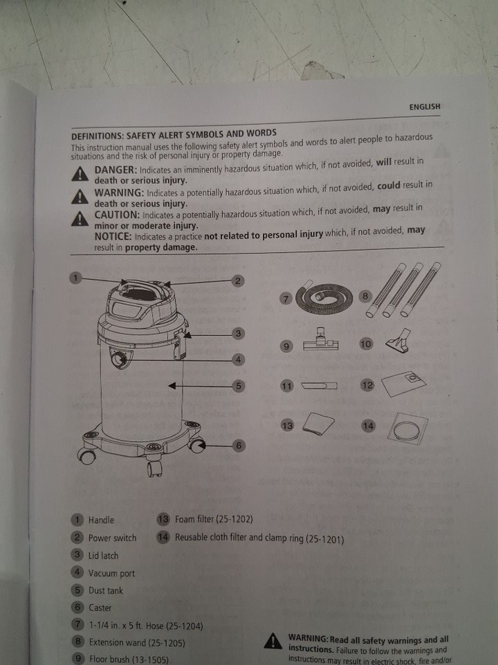 The vacuum looks new, but a wheel broke off during the shipping process, the wheel can possibly be super glued back together or replaced online. (Please see photos) Tested for power.