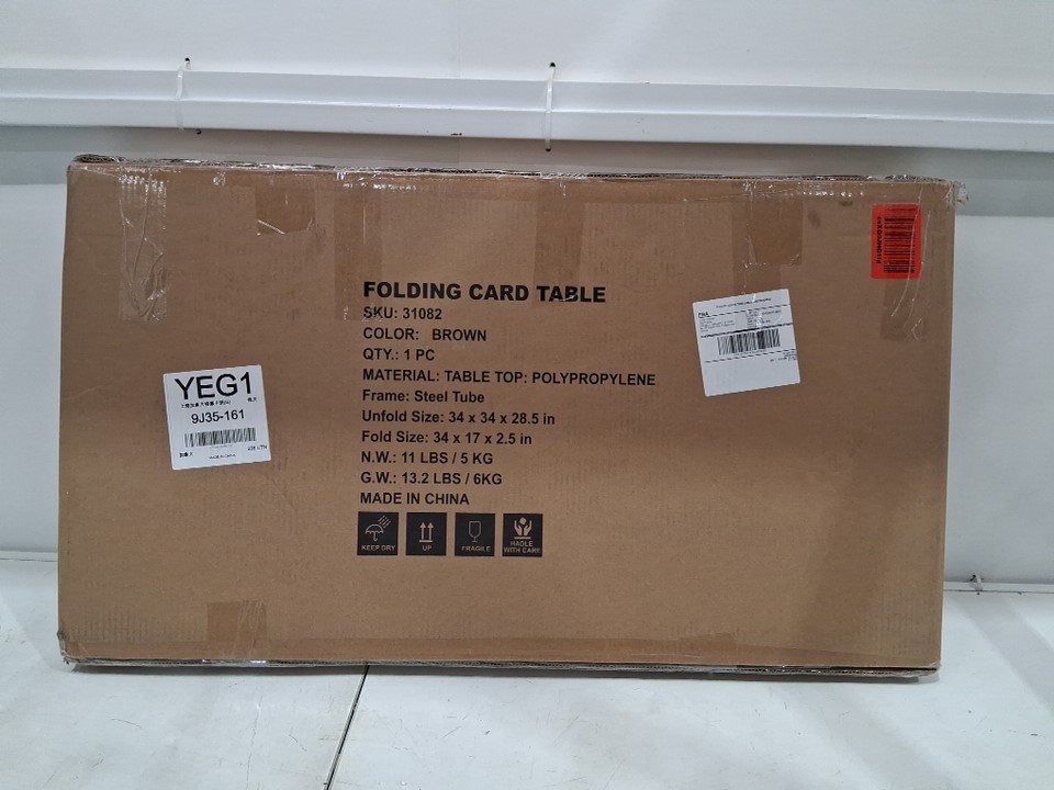 REDCAMP Folding square Buffet/card Table, with carrying handles - 34" - brown (model: 31082)