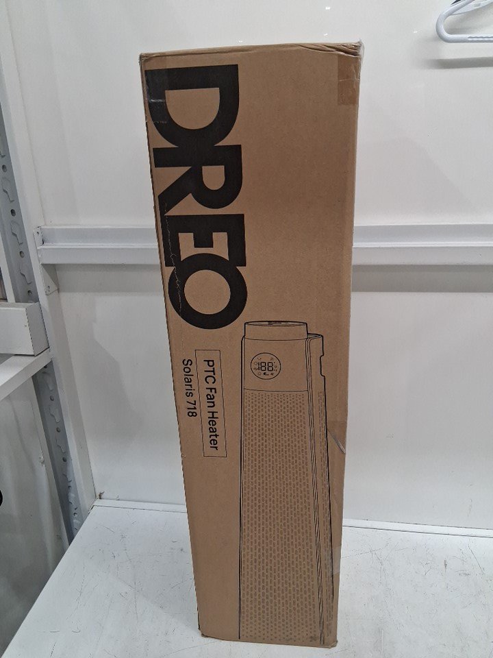 Dreo Solaris 718 PTC Tower Heater - 1500W - 5 Heat modes - 3 fan modes - 41-95˚F thermostat with 1˚F Increments - 30" - Black (Model: DR-HSH008)