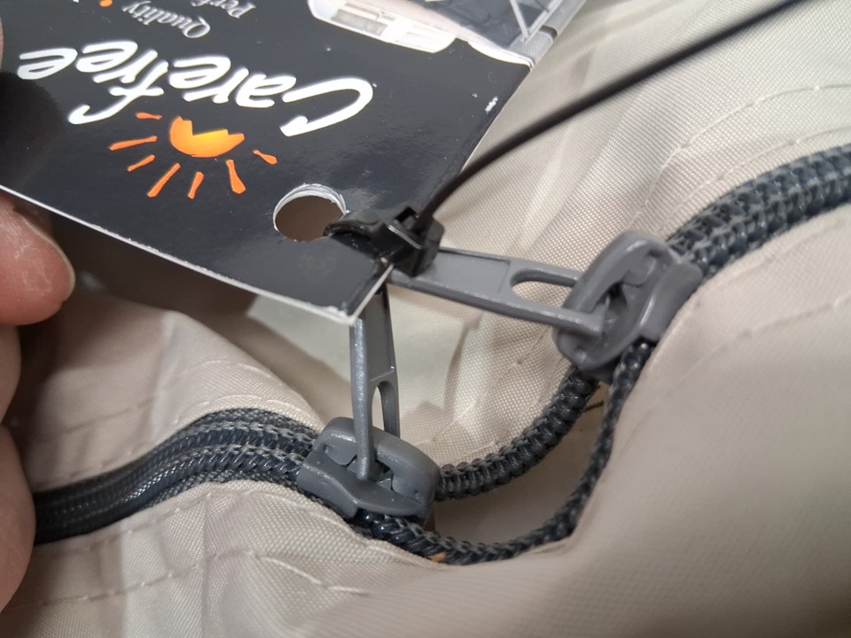 Item has come with both zippers zip tied together indicating its never been opened before. Opened product to make sure it was new. See photos attached.