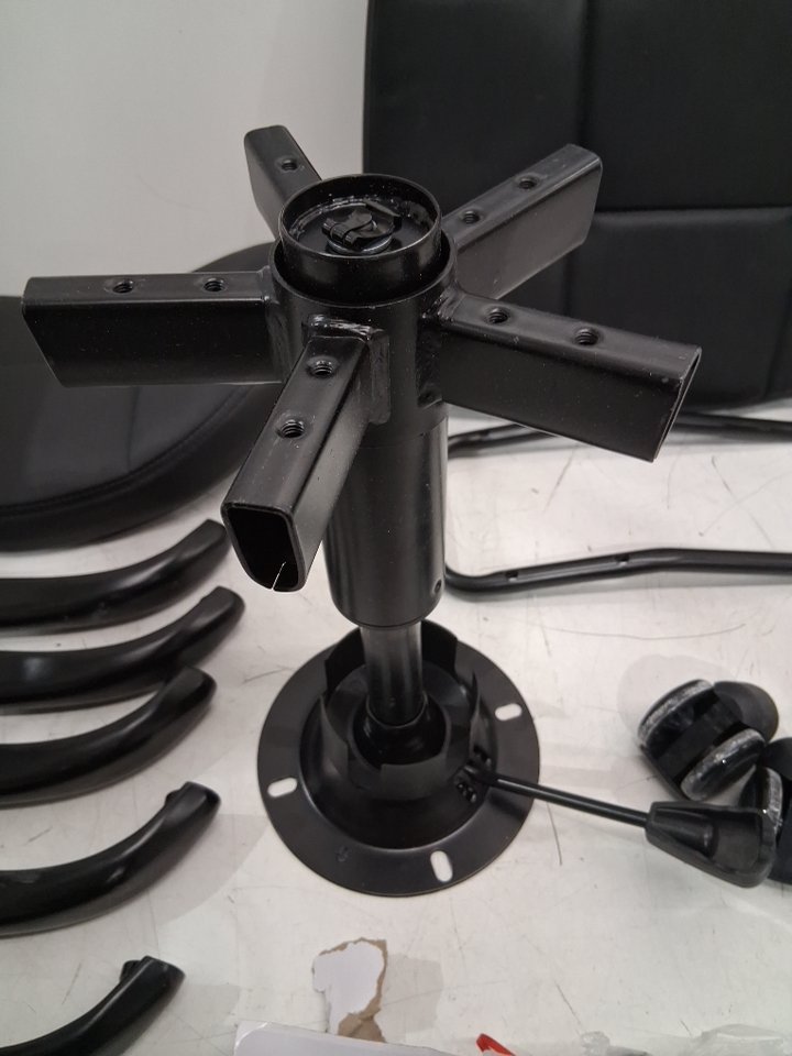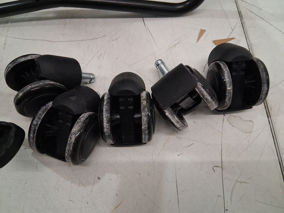 Please note the chair shows signs of previous use with dirt/debris on the wheels and some scuffs on the metal and seat, see photos.