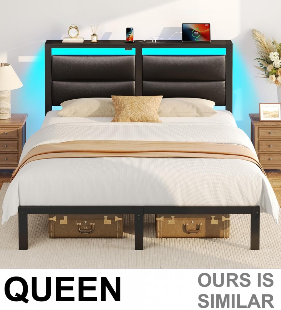 Rolanstar Bed Frame with Charging Station LED - QUEEN - BLACK (model: BF039-VN-CBK-Q-RR)