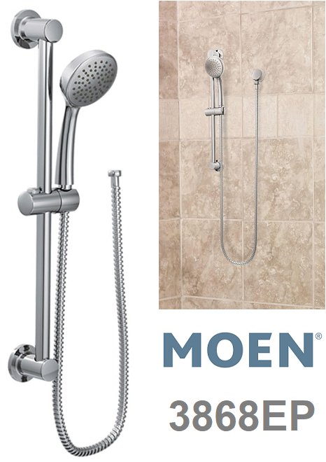 MOEN ECO-PERFORMANCE 1-FUNCTION HAND SHOWER WITH 24" SLIDE BAR - CHROME (Model: 3868EP)