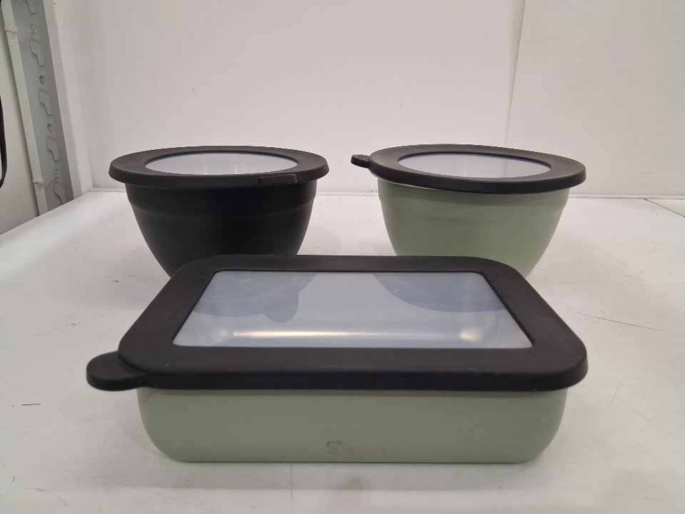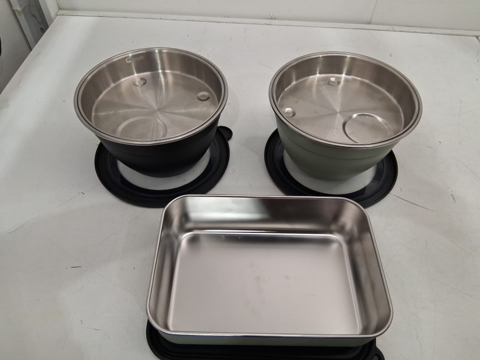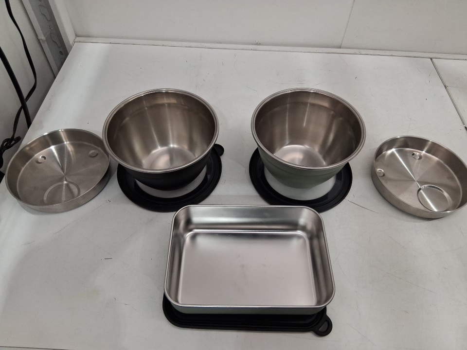 Please note that there are scuffs/minor dents on the item presumably caused from shipping. The bento box divider, and 2 small dry jars are missing 8PC: 2 Bowls 2 Bowl Lids 2 Bowl Dividers 1 Bento Box 1 Bento box lid