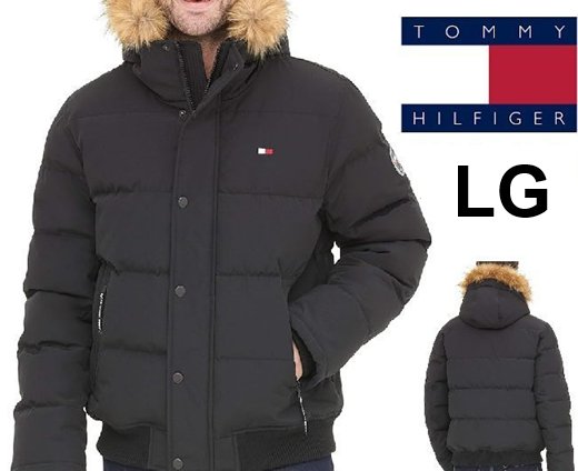 men's tommy hilfiger arctic cloth quilted snorkel bomber jacket/winter coat - large - black (style: 159ap863)